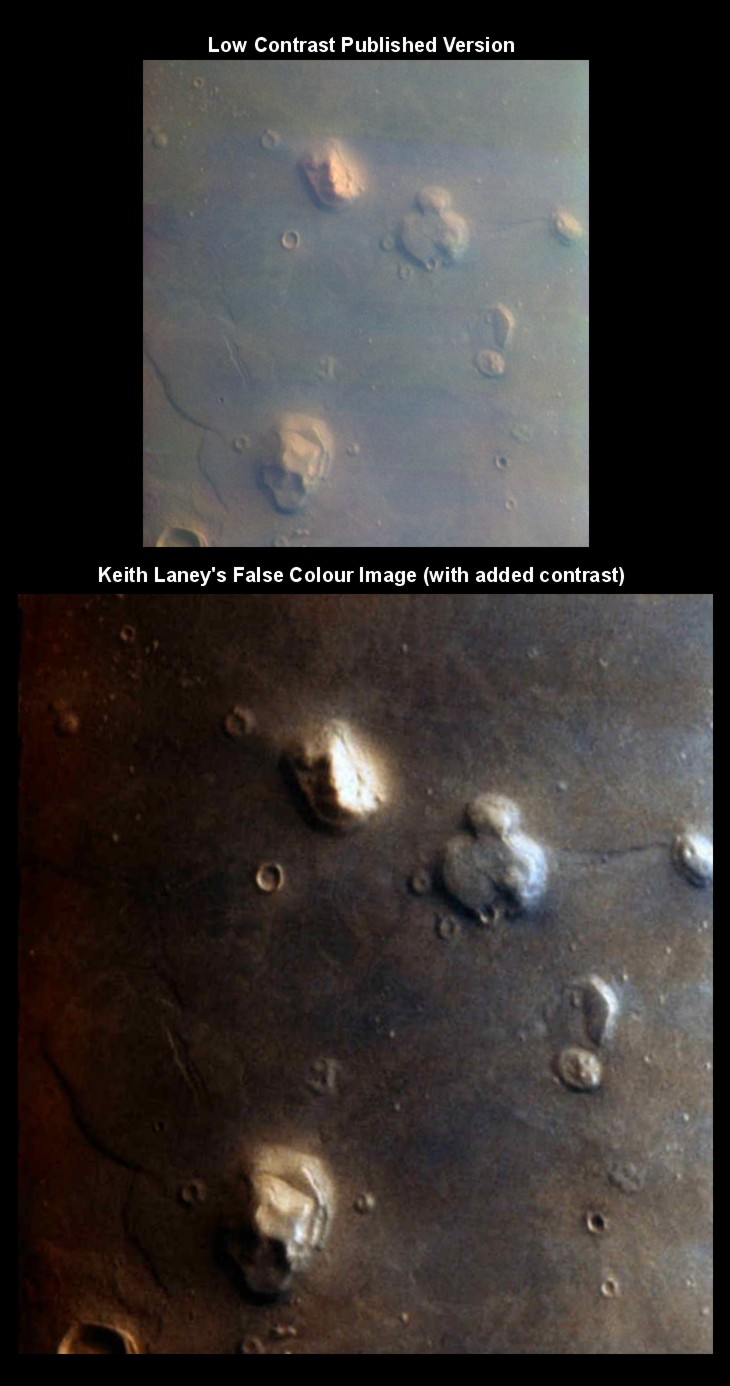 Although the colour of the Face and D&M Pyramid looks the same in the published low contrast version, increasing the contrast is bringing out some difference in the way the two features are reflecting light.