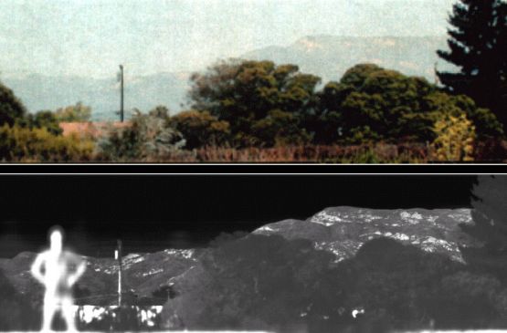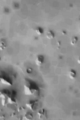 C The first thing that becomes apparent is that the invisible man is given away by his own body heat. We can also see the ability of infra-red to cut through atmospheric haze. It is much easier to discern the areas of vegetation and bare rock on the distant hillside than in the visible light image. However, although nearby trees and bushes have a range of leaf colour ranging from yellow to dark green they all look much the same in this image (because leaves are water cooled to an optimum temperature). This is also true for the invisible man or the roof of the building behind him. Only the telegraph pole shows more detail because of the presence of both wood and metal. If the distant hillsides had been completely devoid of vegetation it looks as if they would have been almost one block of white. To my eye both the "official" and "real" versions of the Cydonia IR images released on the 24th July have less detail than would be expected from a comparable visible light image of the same resolution. The image above at least suggests that it is plausible that a genuine IR image of Cydonia would be as lacking in surface detail as the leaked "real" version of the images. The Enterprise Mission's case for a cover-up would be greatly improved if they could find a conclusive piece of evidence to objectively show that there is too much surface detail in the "official" version of the image. The second complaint against the "real" images was that the "look" and certain features (the "blockies") seen in the nine individual IR image bands could be almost replicated by degrading the "official" images in certain ways. The Enterprise Mission's counter argument is that it is difficult to see how the "official" images, which produce a noisy mess when processed with decorrelation stretch, can then go on to produce entirely coherent decorrelation stretched images after they have been degraded. Cydonia Quest has been experimenting with changing the "official" images to look more like the "real" versions and has developed a test for judging how close similar looking images really are. The results of these experiments have led me to conclude that it may not be possible to exactly replicate the "real" images from the "official" images. This would suggest that the "real" images were made from original THEMIS data even if they have undergone some process of "degradation" - and not from the published (and analytically inadequate) "official" image. In other words, in this scenario, it would only have been possible for the "real" images to have been made with data that has not yet been made available to the public. That being said, I do suspect that the "real" images have been subjected to some kind of additional filtering after they were processed. The Cydonia Quest view of the thermal grids seen in decorrelation stretch images of the "real" IR images is that this filtering has created the illusion of grids in parts of the image where they don't exist. However, enhancement of visible light images and of the "official" IR images by Cydonia Quest reveals that thermal grid patterns, corresponding to those derived from the "real" images, do exist in the areas around the "Fort", "Face" and D&M Pyramid. These two articles - µµµ & µµµ - in this website's enhancement section give a preview of the arguments and evidence that will follow in Part Two of this investigation. If both the "official" and "real" versions are not as good as they might be then this raises some interesting possibilities that are touched on below. In Part Two a scenario will be put forward for why this may be the case. The arguments of those who think the "real" image is a total hoax will be analysed in Part Three. The illustration below left shows a portion of the "real" IR image set, with its controversial "blockies". The illustration on the right gives an example of how well decorrelation stretch images derived from the "real" data match the landscape seen in visible light images when overlain onto them. C C Put simply the Enterprise Mission case for the "official" images being a NASA perpetrated "fraud" is that they cannot be used to create coherent decorrelation stretch images like they are supposed to. Secondly, that the range of information differences between the nine "official" IR image bands seems to be strangely muted as if the data range has been deliberately compressed. If NASA was systematically tampering with IR images from the Mars Odyssey then it would be a very dangerous step on the road to perdition for the hypothetical conspirators. There is a precedent for NASA tampering with an image to distract public attention away from Cydonia anomalies. When the first high resolution image of the "Face" from the Mars Global Surveyor was released to the media in April 1998, it had been so thoroughly degraded that all sense of relative depth was lost. This "Catbox" image has caused resentment amongst Cydonia researchers ever since, (click "stargate" for details µµµ). A properly processed version of this "Face" image was only released the next day when the media had lost interest in the story. I think it's possible that when the "official" Cydonia IR images are released onto the Planetary Data System (PDS) website we will find that it will be possible to produce decorrelation stretch images from them similar to those derived from the "real" images. I don't think the individual images will look any more like the "real" image set than the "official" ones do now, but I suspect that decorrelation stretch will reveal some very anomalous thermal grid patterns in the area I've identified above. The Enterprise Mission case for the "real" IR images being a more honest representation of the IR data collected by the THEMIS camera can be seen in the example of the decorrelation stretch image derived from it above. Exposed ridge lines can be seen to be compositionally different from the loose eroded material lying on the lower slopes. The "official" imag