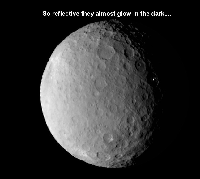 c The reflectiveness of the "Lights" is such that they can still be seen gleaming as they rotate into the night side of Ceres. It is almost as if they glowing under their own power. Indeed, some anomaly researchers have even suggested that they contain luminescent chemicals. These store up the energy they receive from sunlight to glow when they are in the dark. C Figure 4 - Last frame showing the "Lights" rotating into the darkness
